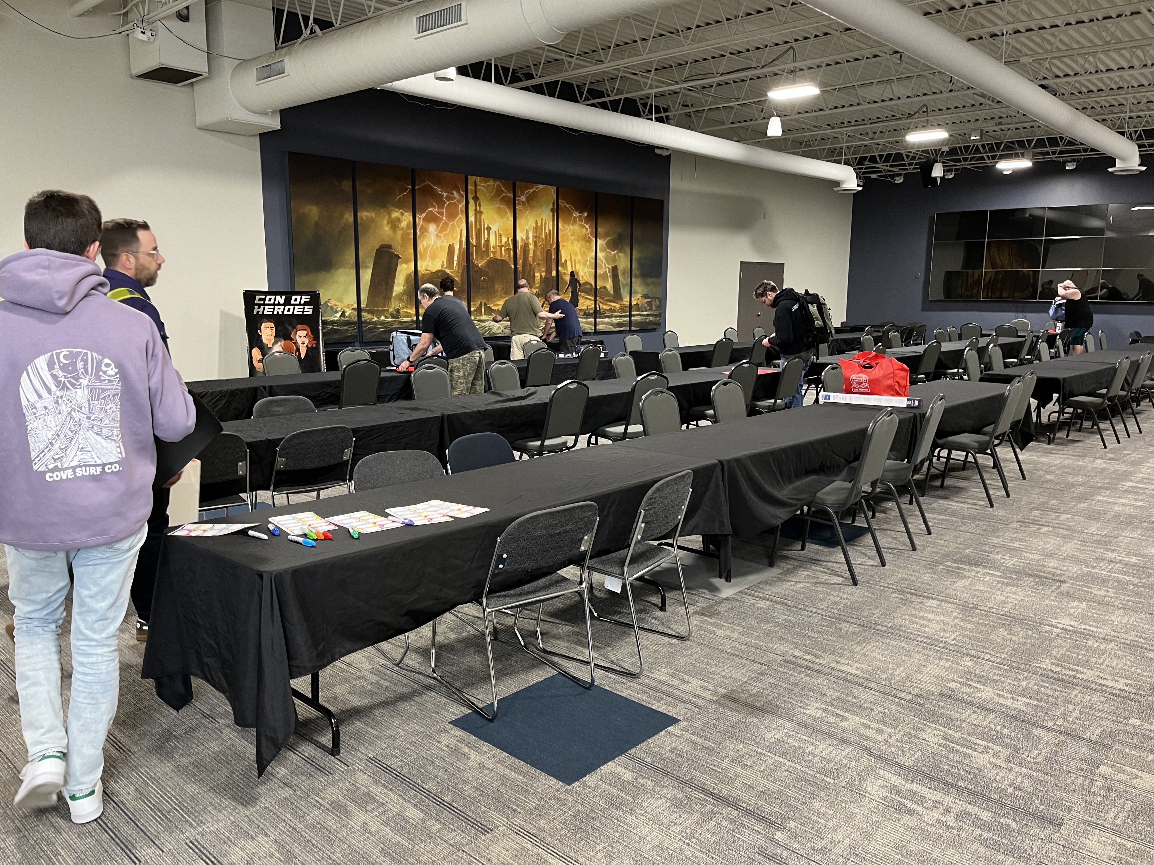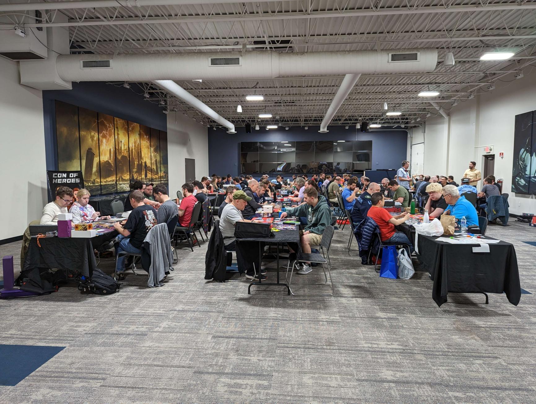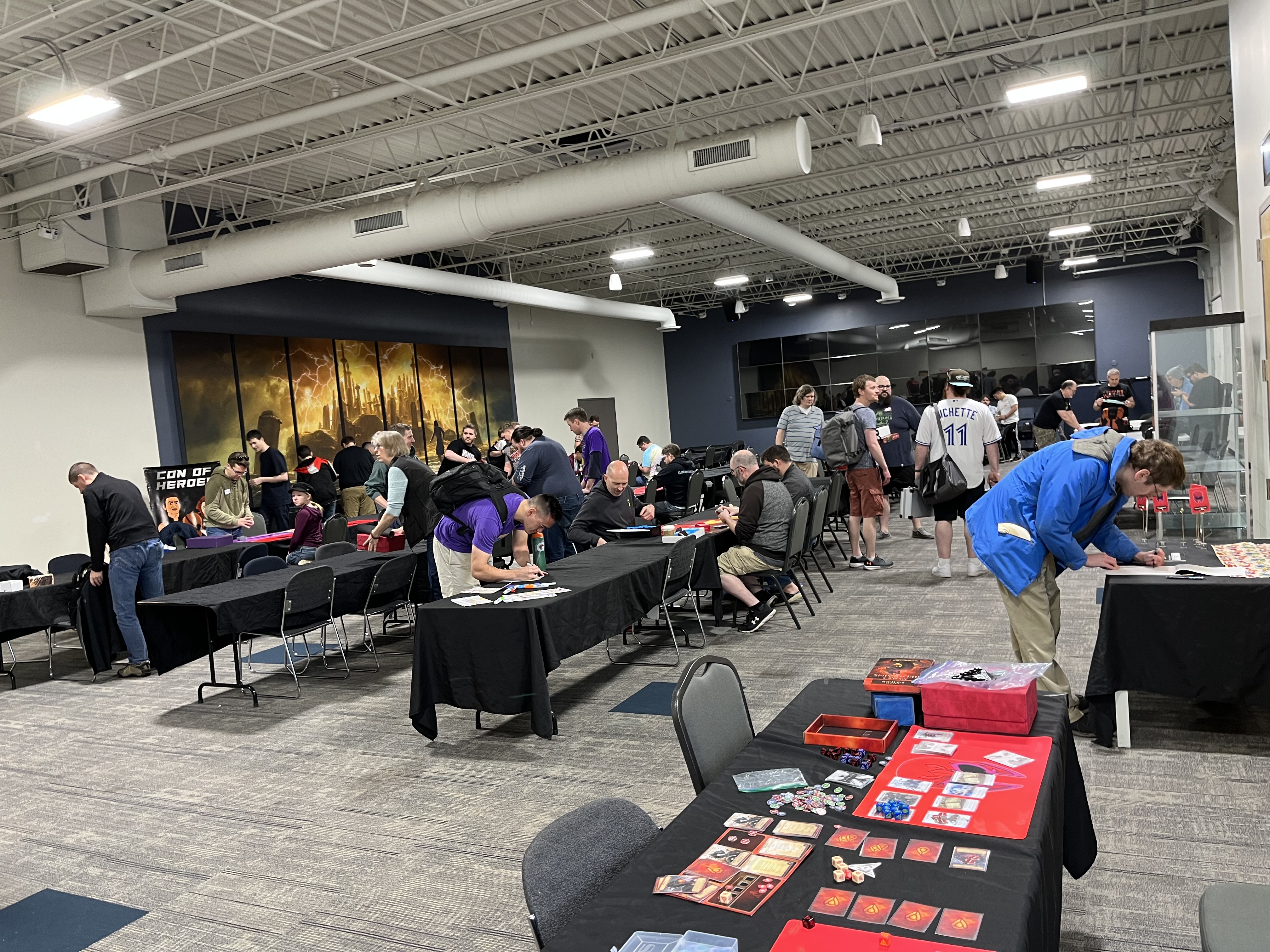 It’s time for another Con of Heroes! Here’s what early Thursday setup looks like at the Gamezenter, and the new banner is on display at the Doubletree hotel.