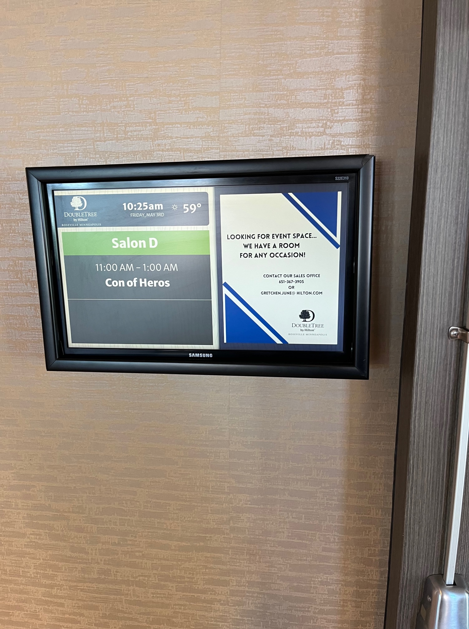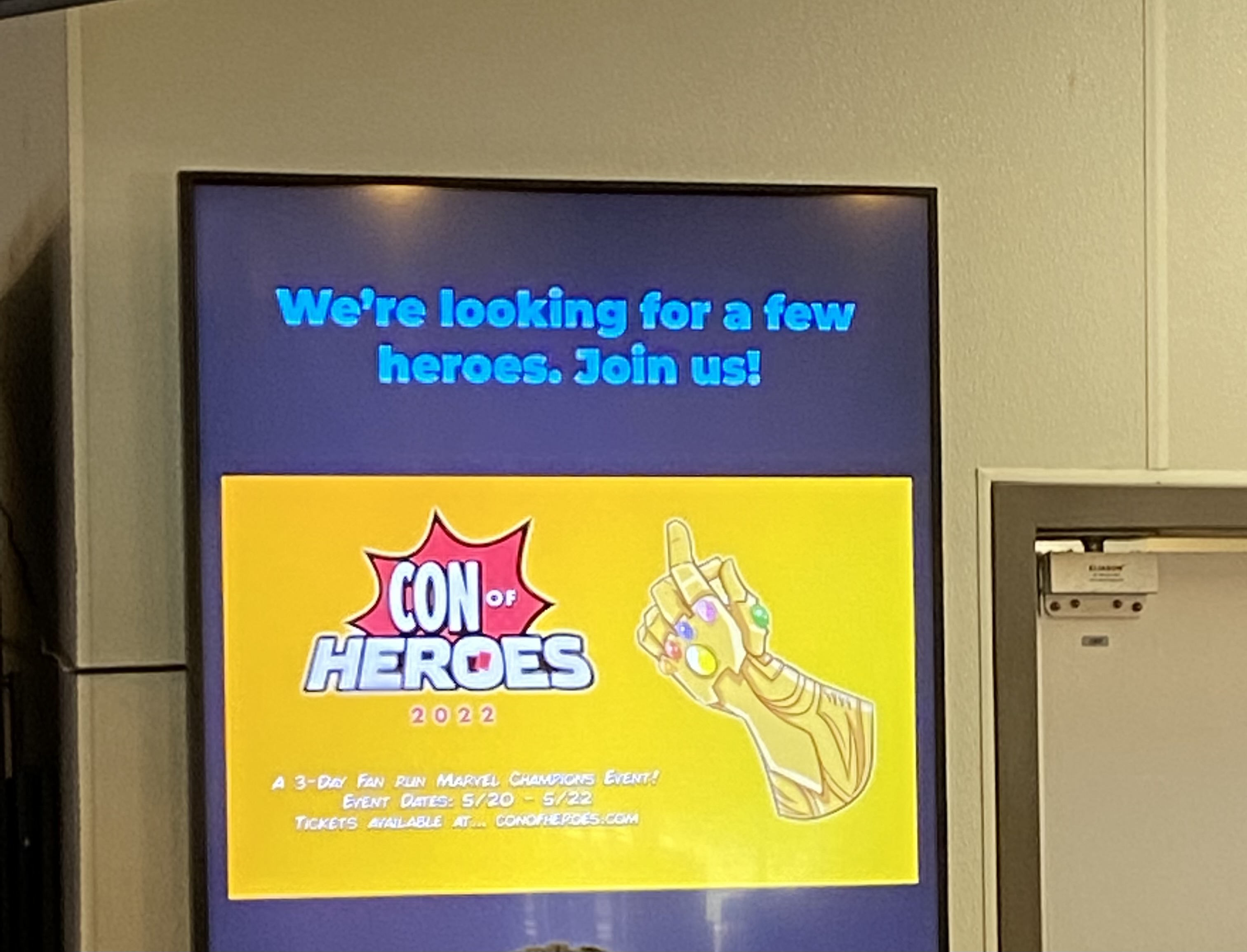 Setup was underway Thursday for the Con of Heroes team! The hotel was also prepped and ready to go with our logo in the lobby.
