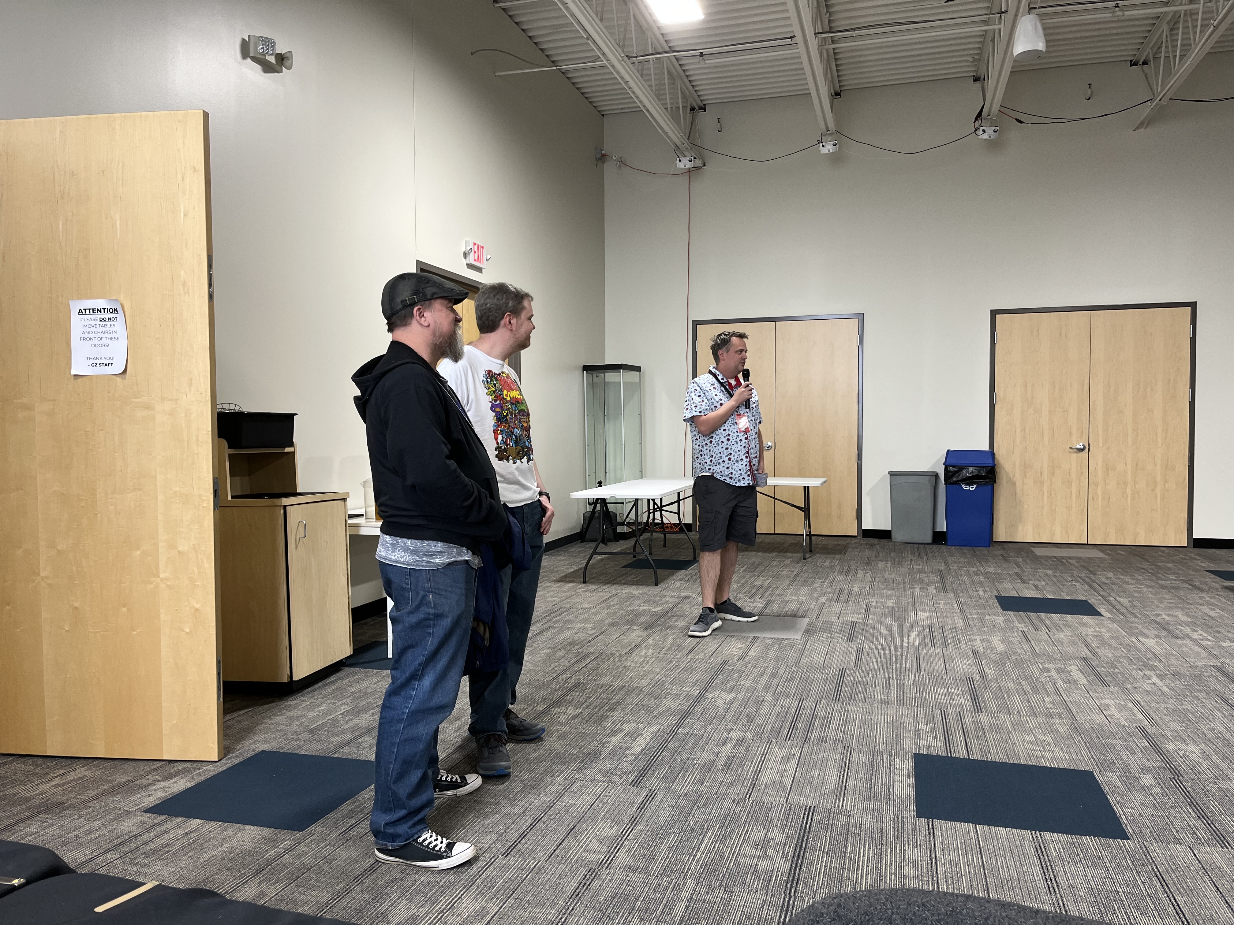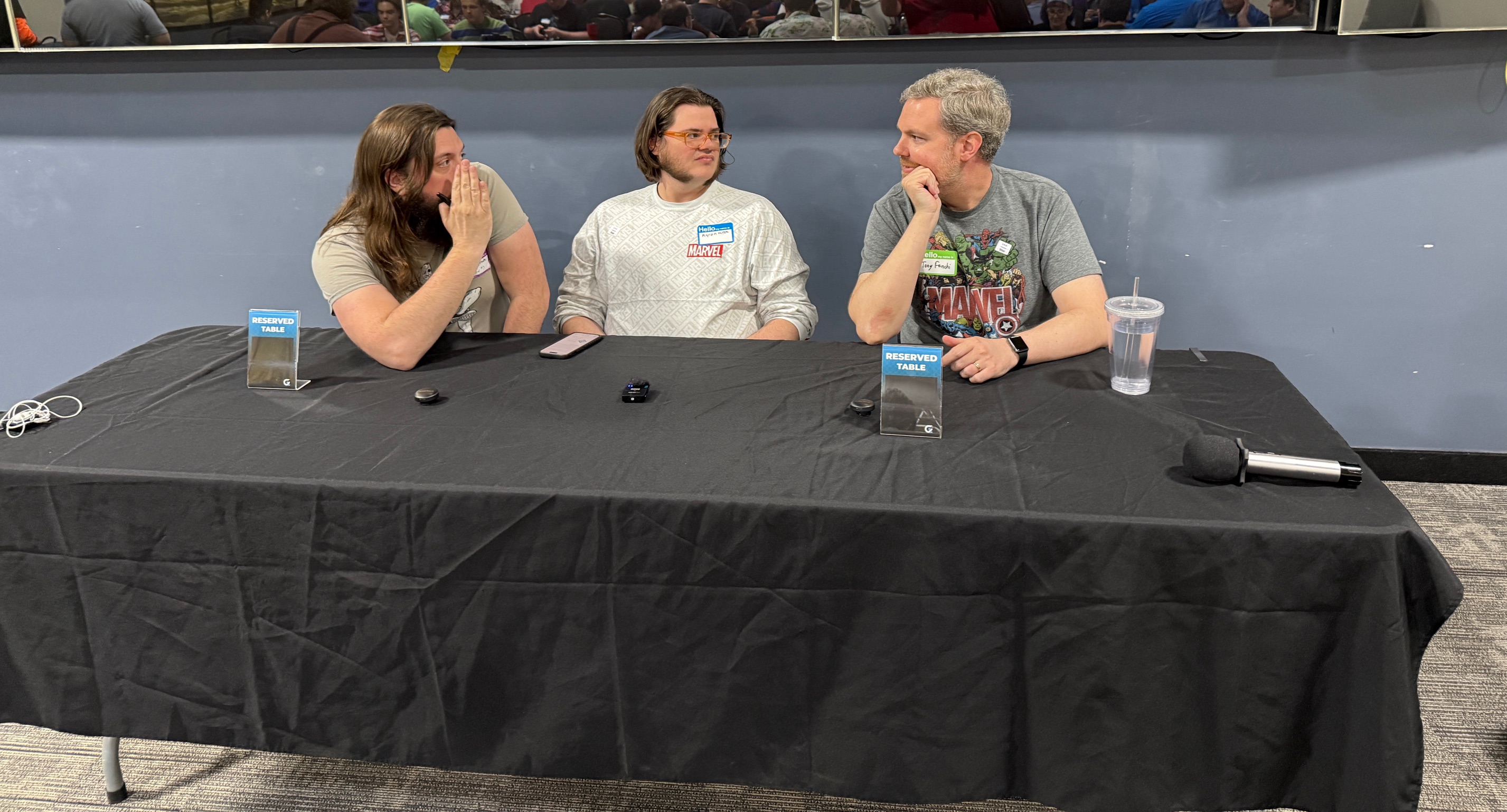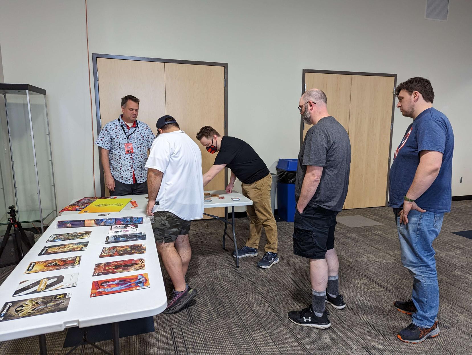 All three members of the current development team (from left to right: Frank Brooks, Aaron Haltom, and Tony Fanchi) attended the event on Friday to play with fans, sign cards, and present a panel! Former lead developer Caleb Grace and several members of FFG staff also were on site.