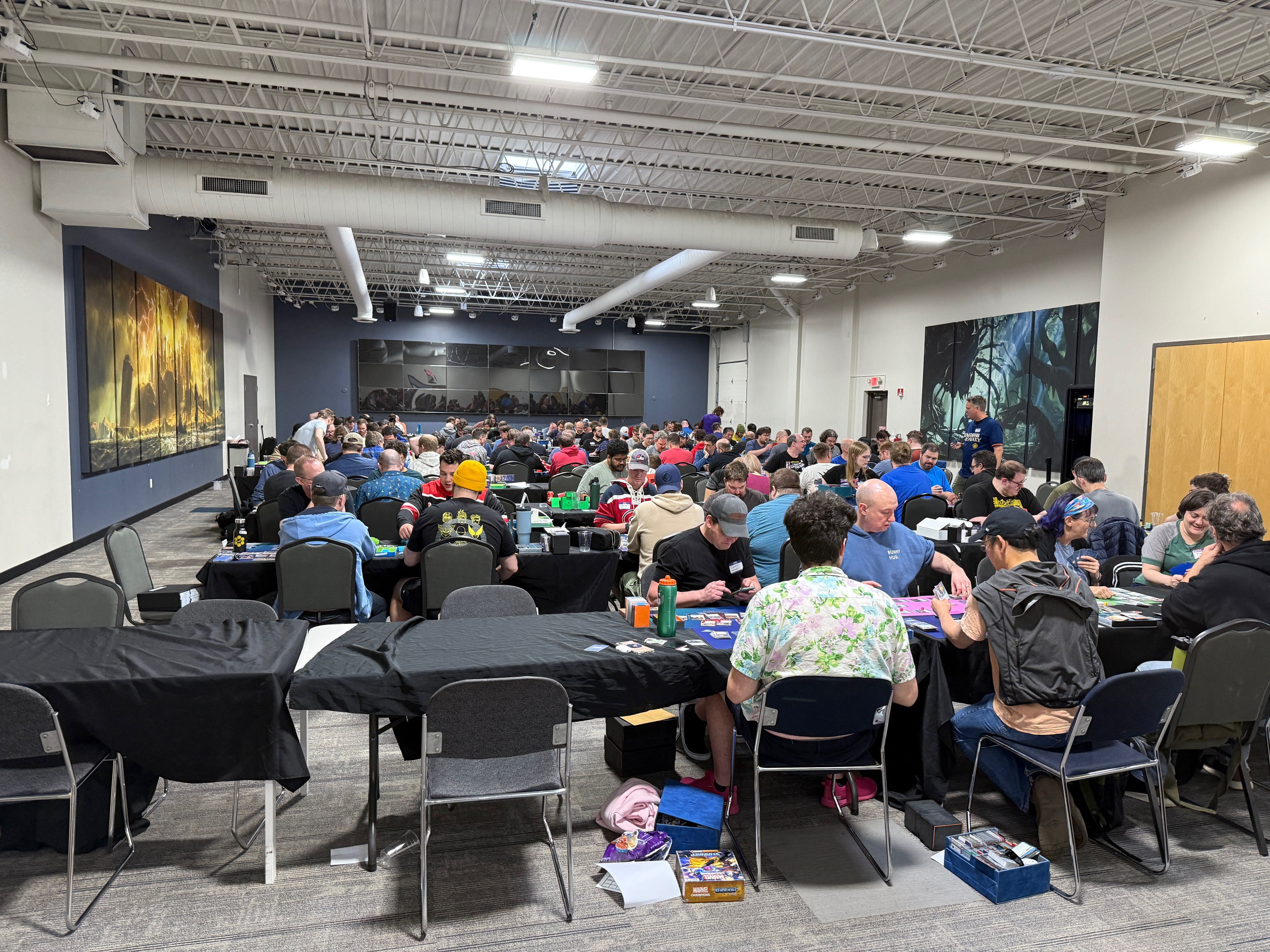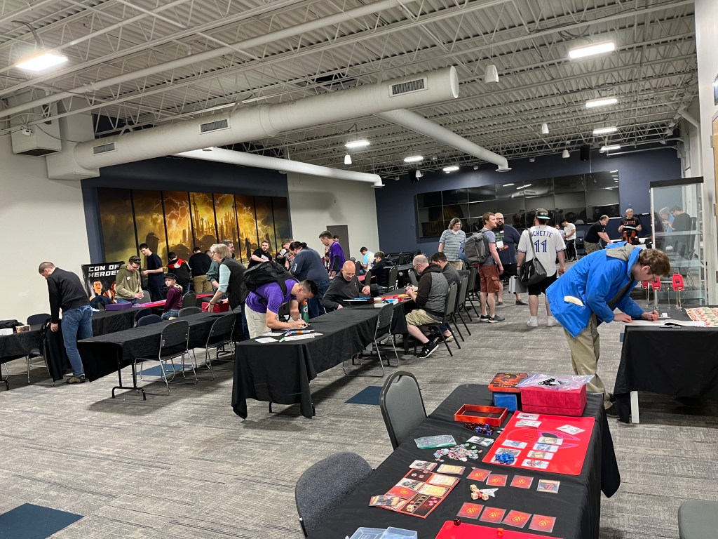 From Friday to Sunday, the Doubletree Hotel provided us with an entire room to play in (Salon D), which was an incredible perk for folks who wanted to get some more games in after the Gamezenter closed down each day. Every night was packed with Marvel Champions, Star Wars Unlimited, and other various board game players. Sometimes it even overflowed out to the main lobby!