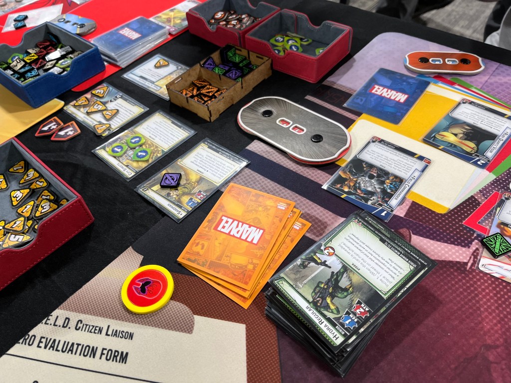 SHIELD HQ in all its glory: a free table to pick up heroes, aspect cards, villains, and mods: given how popular it was, expect SHIELD HQ to return in 2023!