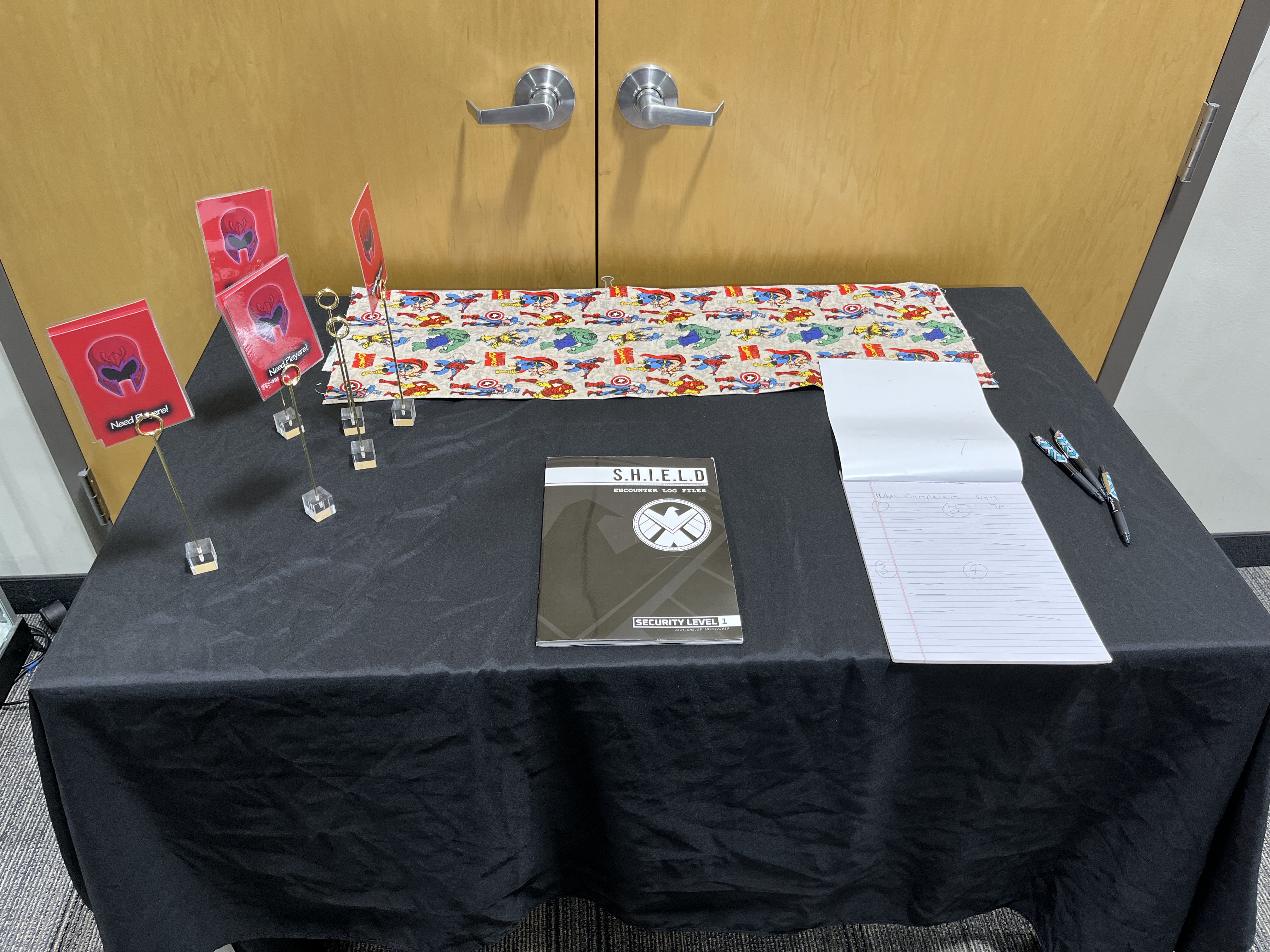 This year, due to player feedback, we have sign-up sheets for events, as well as “need a player” flags to use to indicate that you need more people.