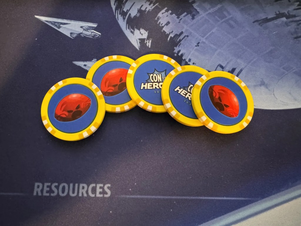 All tickets come with multiple items of SWAG. Here’s the first piece for 2022: a customized Con of Heroes first player token, to use at the con!