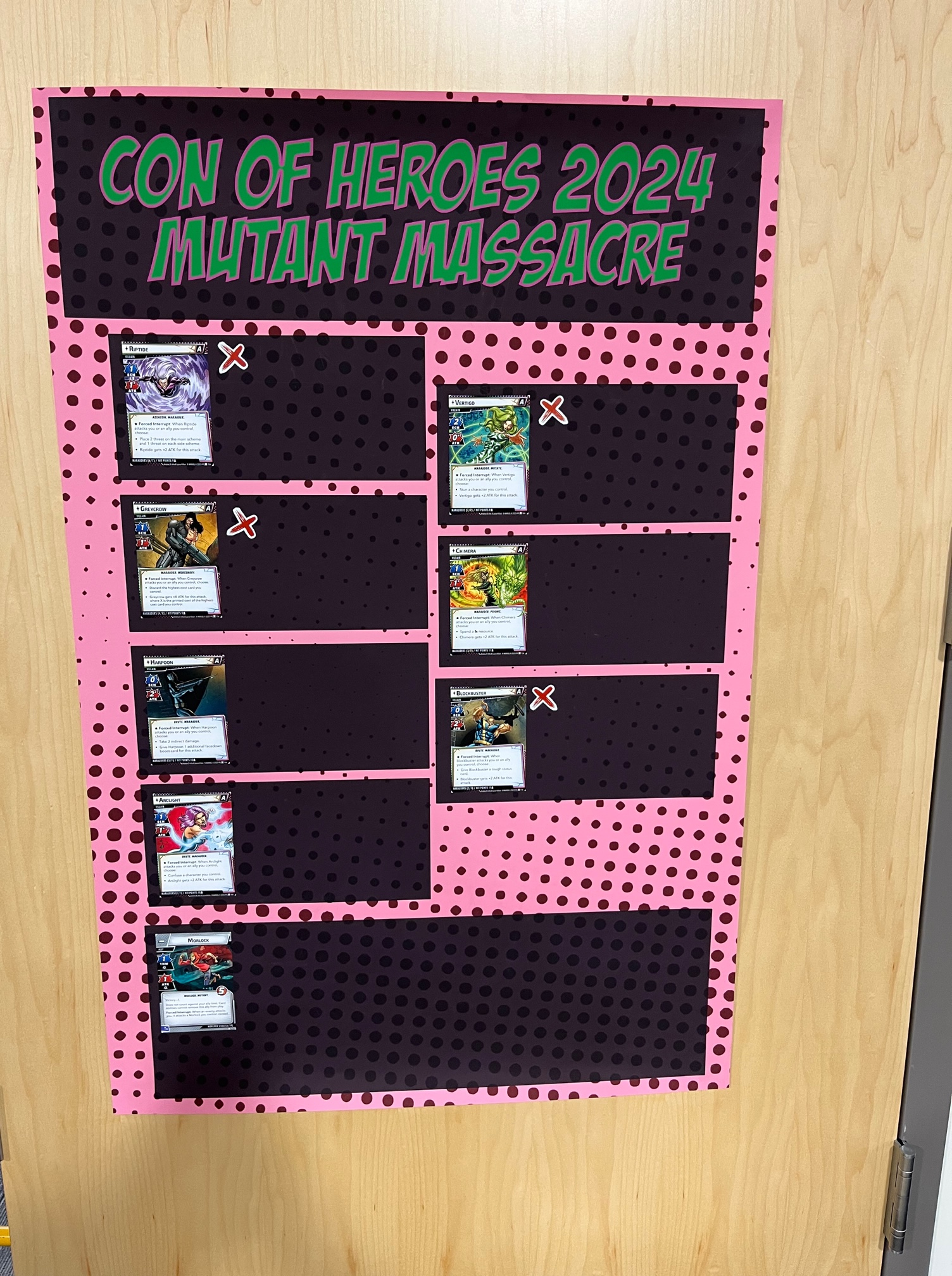 After you killed a Marauder at your table, a representative went up and placed an “X” sticker on that villain to denote a “defeat.” Thankfully we got through with a minimal amount of casualties!