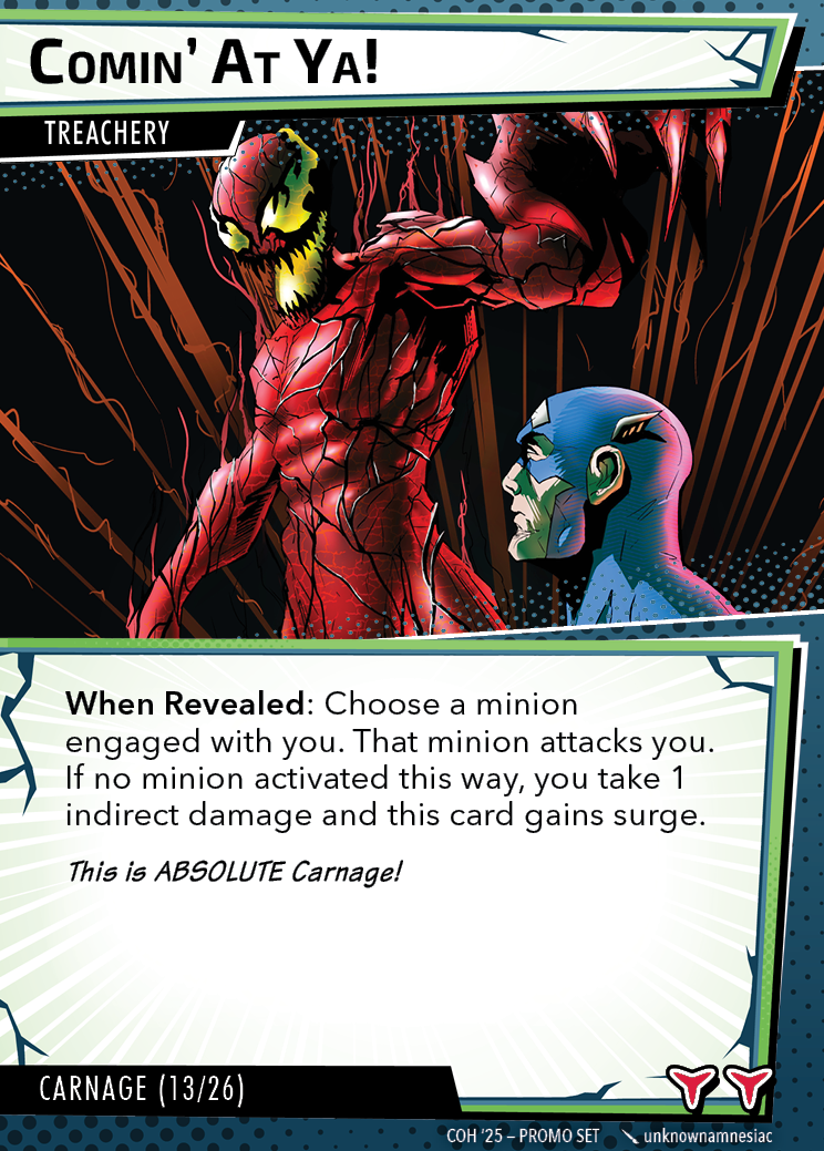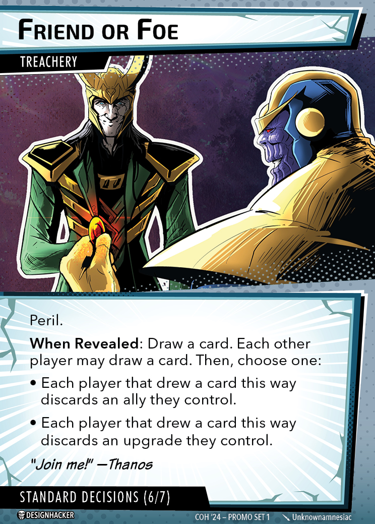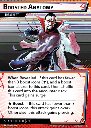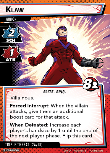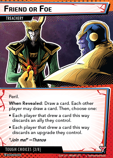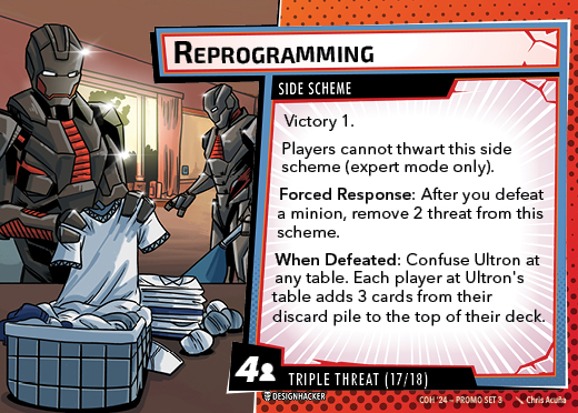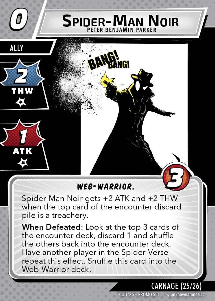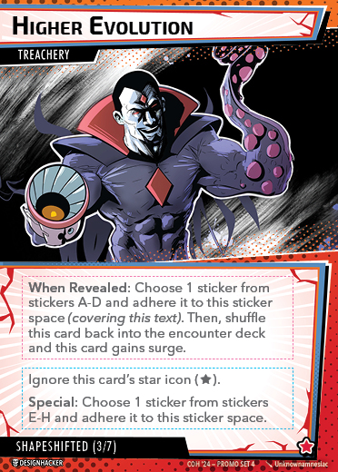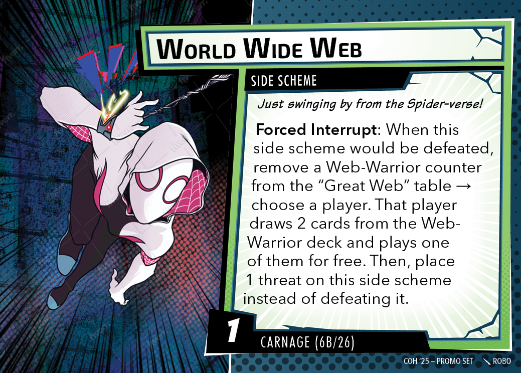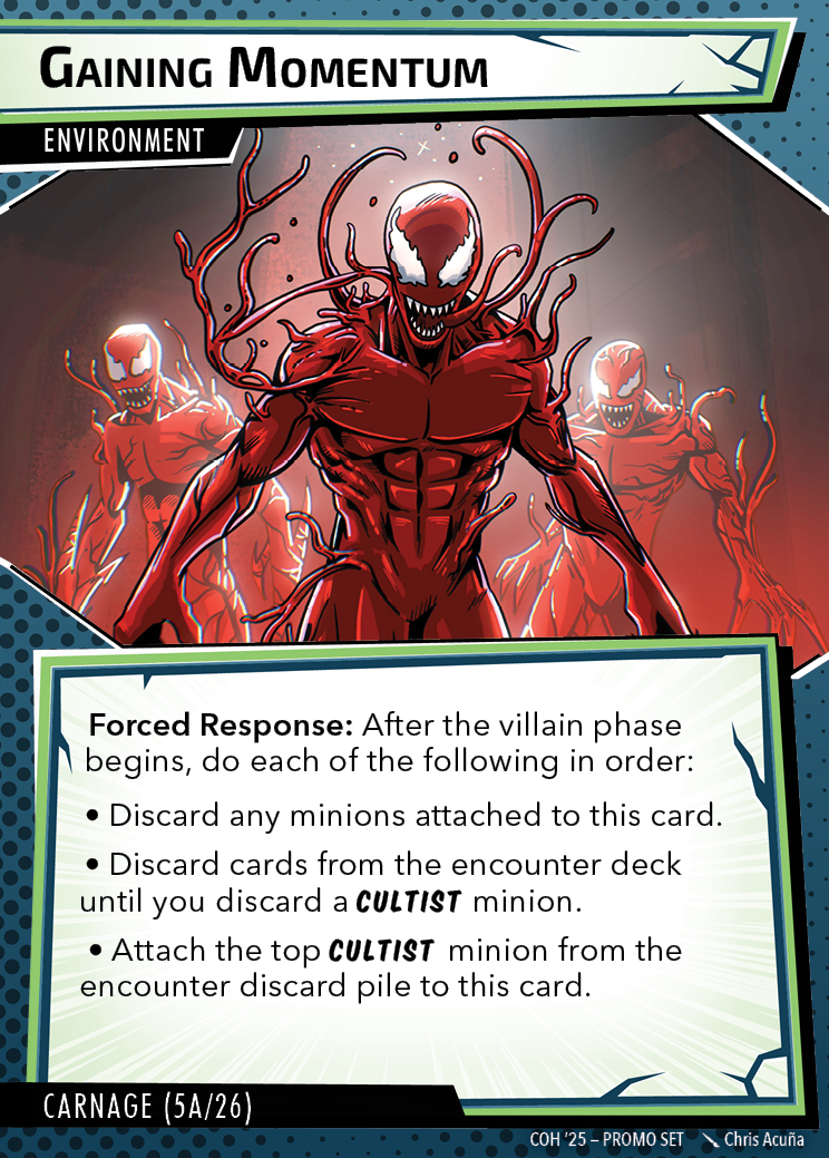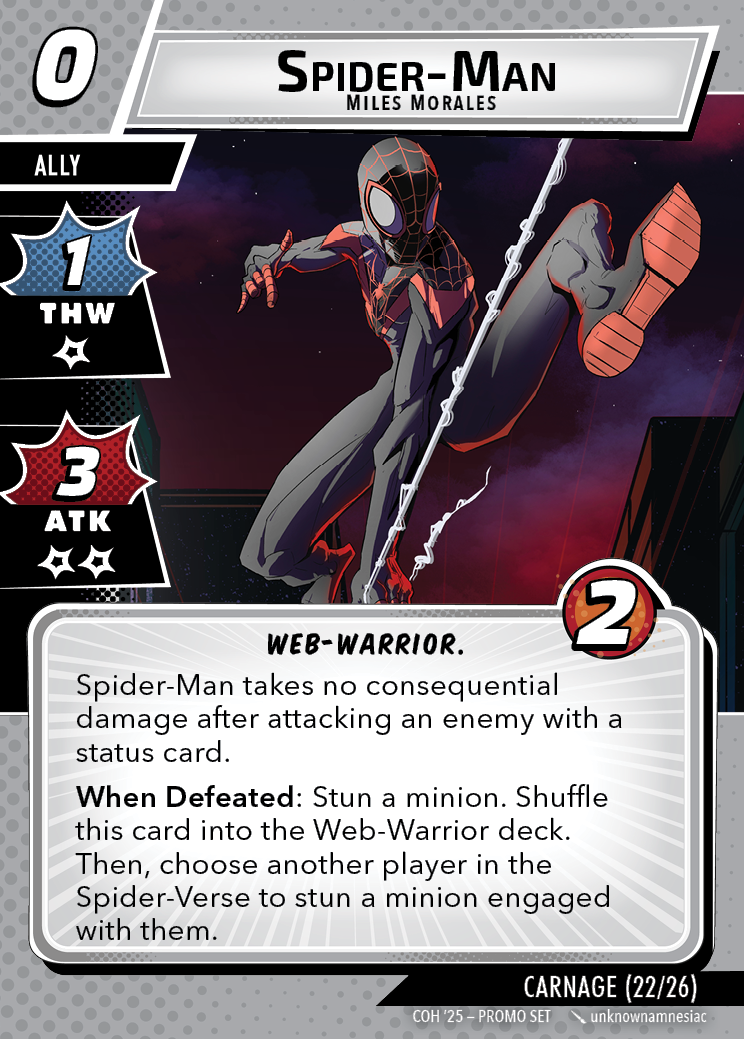 The Con of Heroes 2025 Campaign consists of any four scenarios of your choosing. The first three use double-sided symbiote cards as both challenges and rewards. Randomly select a symbiote upgrade for the first three scenarios, and gain the flipped benefit side as a reward for defeating them.